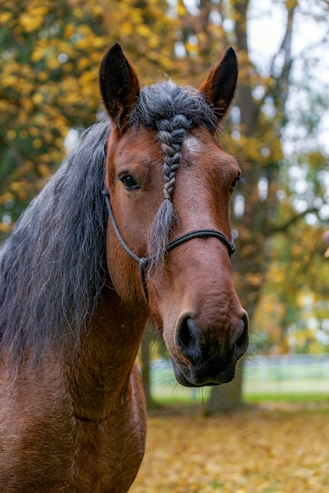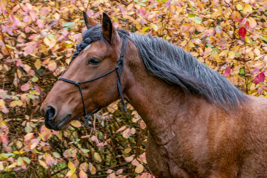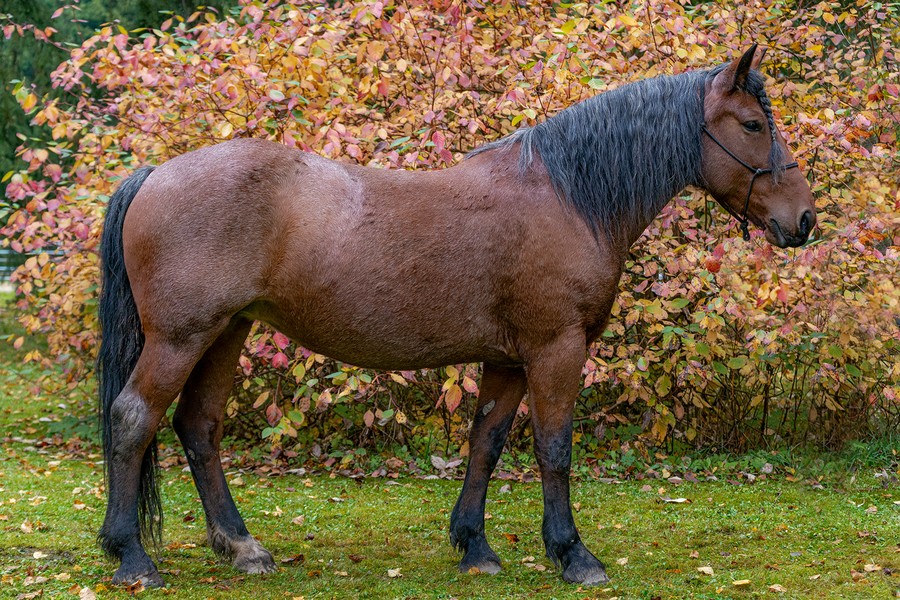 Klisna plemene Slezský norický kůň, barva – silně prokvetlý hnědák, KVH 160 cm.
