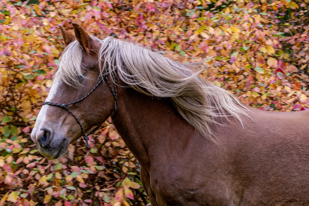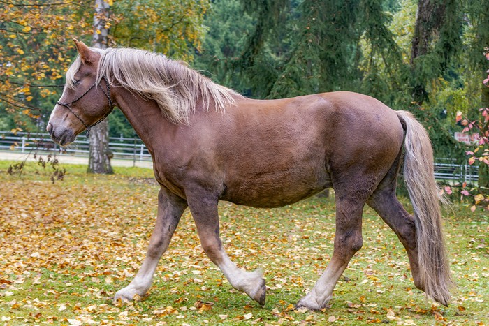 Valach plemene českomoravský belgický kůň, barva - ryzák se světlou hřívou a ohonem, KVH 170 cm.