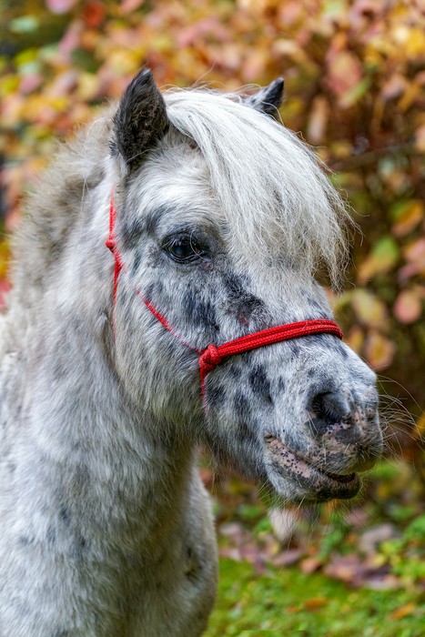 Valach plemene miniapaloosa, barva - skvrnitý bělouš, KVH 83 cm.