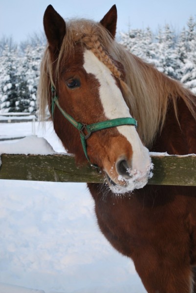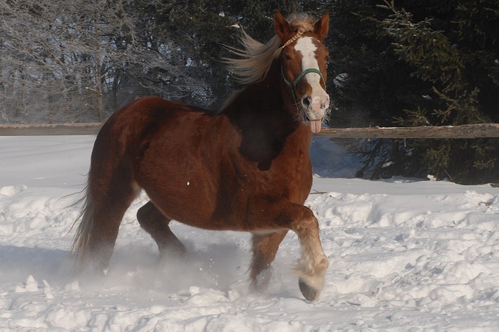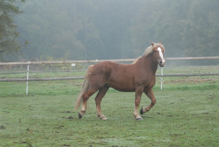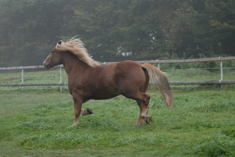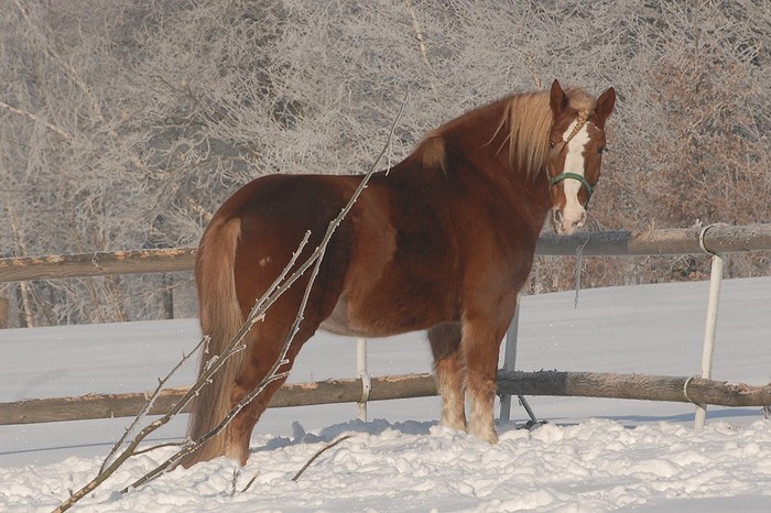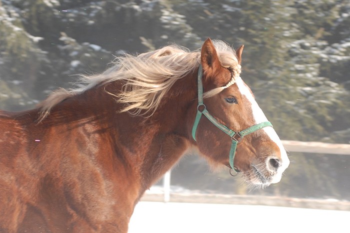 Valach plemene českomoravský belgický kůň, barva - ryzák se světlou hřívou a ohonem, KVH 162 cm.