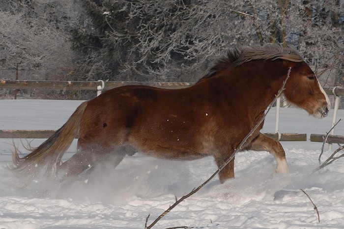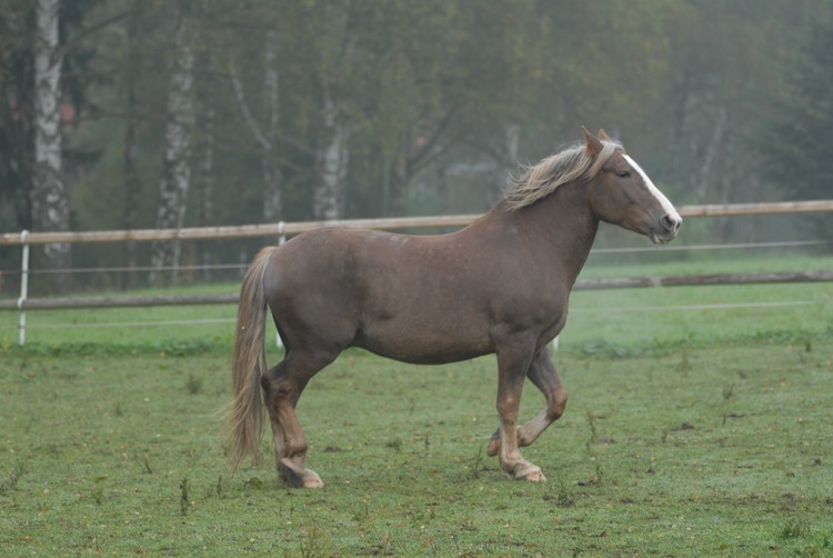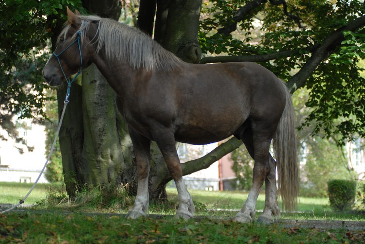 Valach plemene českomoravský belgický kůň, barva - ryzák se světlou hřívou a ohonem, KVH 170 cm.