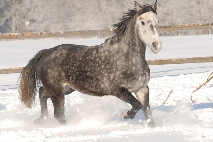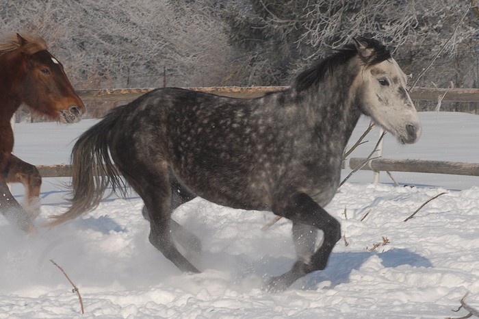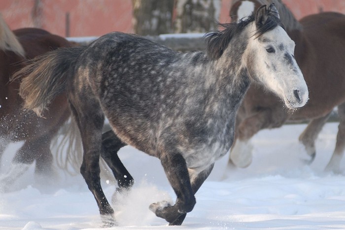 Klisna plemene welsh part-bred, barva - smíšený bělouš, KVH 146 cm.
