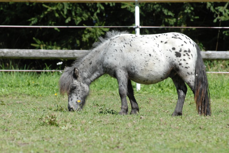 Valach plemene miniapaloosa, barva - skvrnitý bělouš, KVH 83 cm.